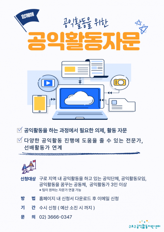 *공익단체란 : 구로구에 소재하는 비영리민간단체 / 비영리법인 / 공익의제로 활동하는 사회적경제 조직 / 공익의제로 활동하는 3인 이상의 공동체모임 등