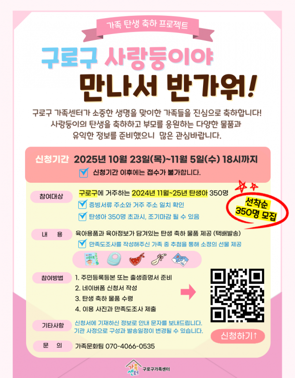 - 구로구에 거주하는 2024년 11월~2025년 출생아 350명