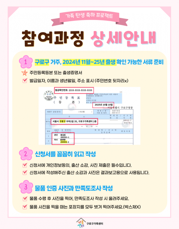 구로구가족센터 <가족 탄생 축하 프로젝트> 안내