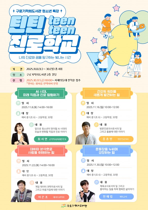 구로기적의도서관 청소년 대상 틴틴 진로학교 개최 안내