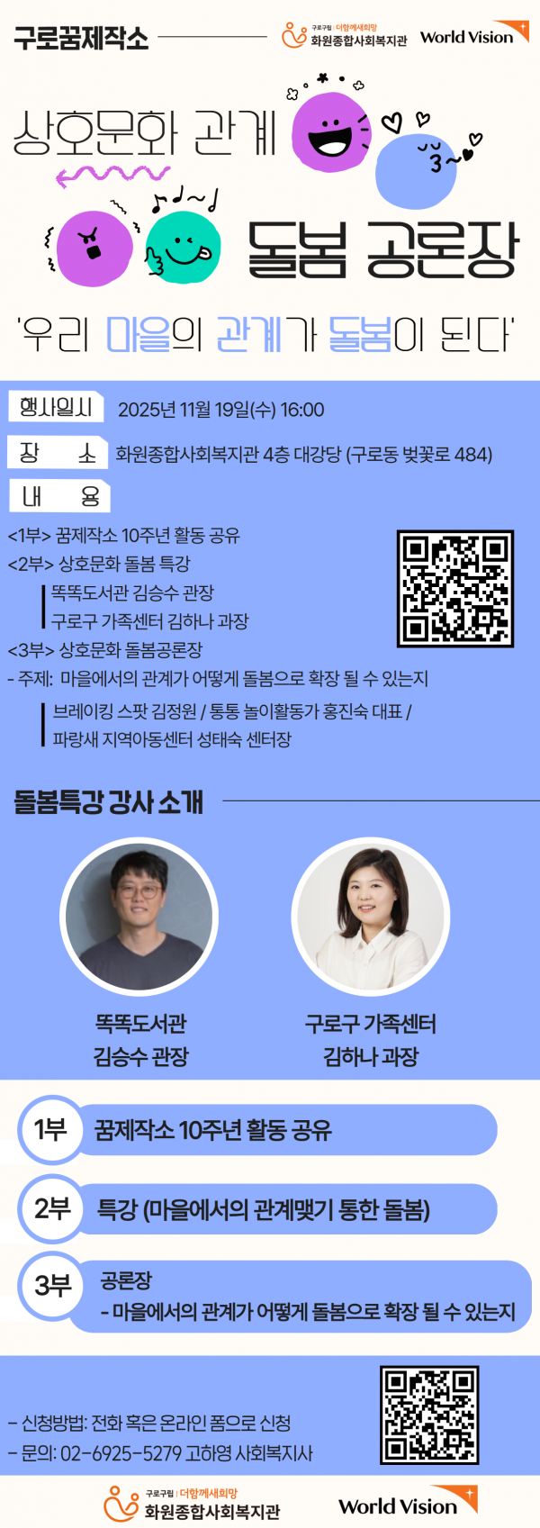 돌봄의 의미와 실천 방향을 나누는 협력의 장이 될 것입니다.