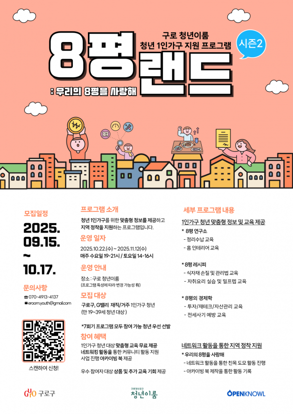구로 청년 1인가구 주목! 8평 랜드 시즌2 모집 START! 우리의 8평을 사랑해!