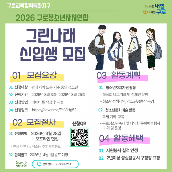 구로청소년자치연합 그린나래에서 2026년 신입생을 모집합니다