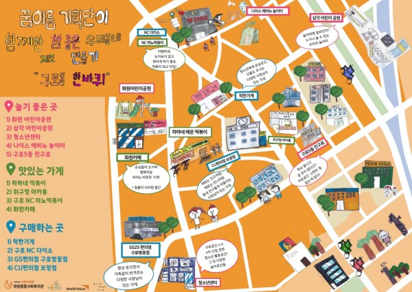 구로꿈제작소 사업의 꿈 이룸 기획단 아동들과 함께 우리 동네에 장점을 담은 지도를 제작하였습니다!