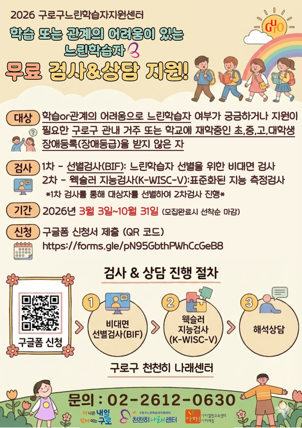 느린학습자(경계선 지능) 무료 검사 및 상담 지원사업을 운영합니다.