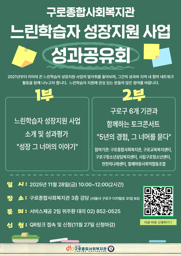구로종합사회복지관에서는 2021년부터 올해까지 약 5년간 느린학습 당사자 및 가족을 대상으로 느린학습자 성장지원 사업을 운영해왔습니다.