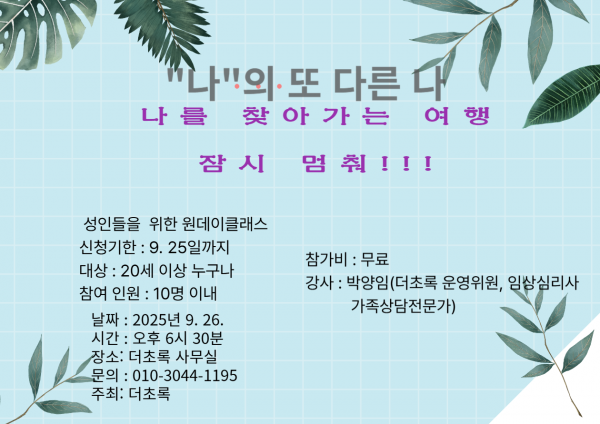 더,초록 운영위와 함께하는 나를 찾아 떠나는 여행 1탄 원데이클래스
