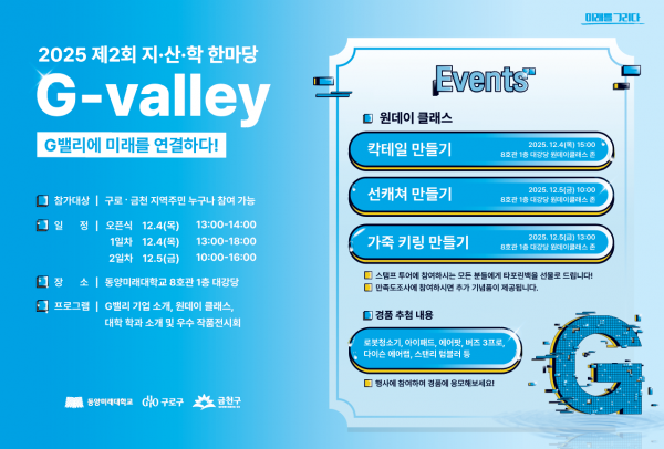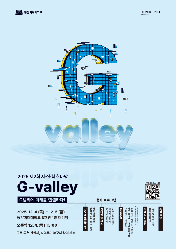 오는 12월 동양미래대학교 「제2회 G밸리 지산학 한마당」 행사를 개최합니다.
