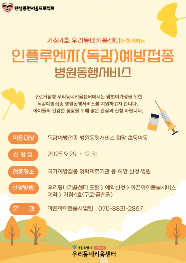 초등 아동 대상 독감예방접종 병원동행서비스 안내