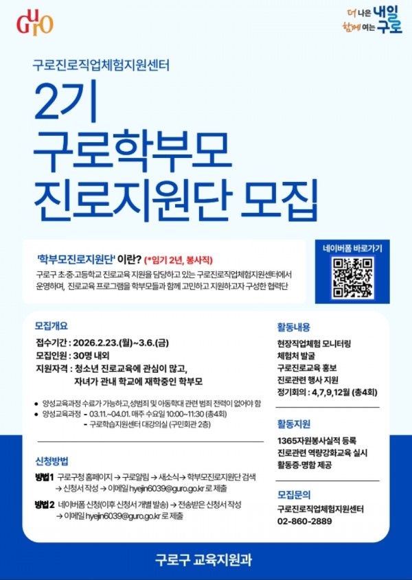 2기 구로학부모 진로지원단 모집안내 [2026.02.23-03.06]
