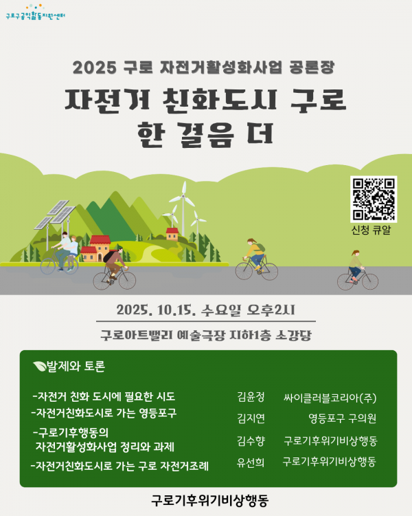 자전거 친화도시 구로를 위한 공론장에 많은 참석 부탁드립니다!
