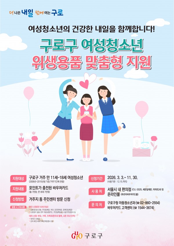 2026년 구로구 여성청소년 위생용품 맞춤형 지원 사업 안내