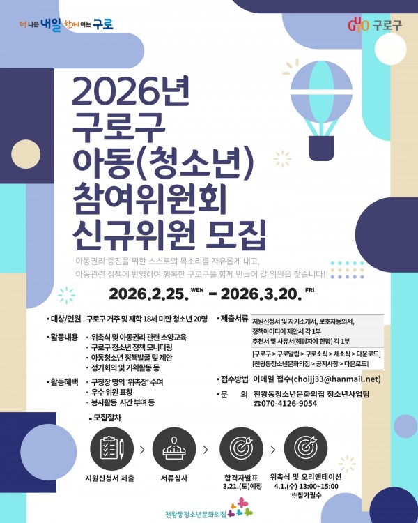 2026년 제6기 구로구 아동(청소년) 참여위원회 신규위원모집 안내