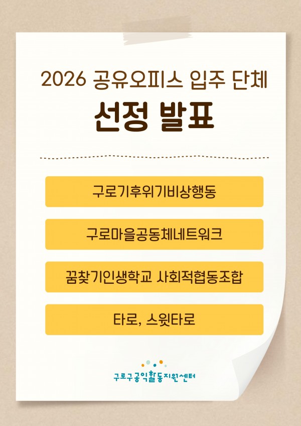 [공지] 2026 공유오피스 입주 단체 선정 결과 발표