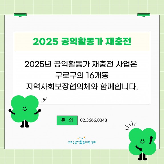 2025년 공익활동가 재충전 사업은 구로구의 16개동 지역사회보장협의체와 함께합니다.